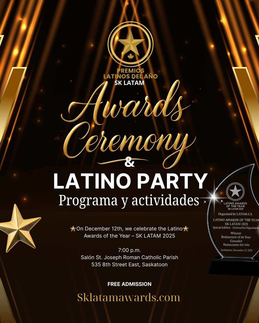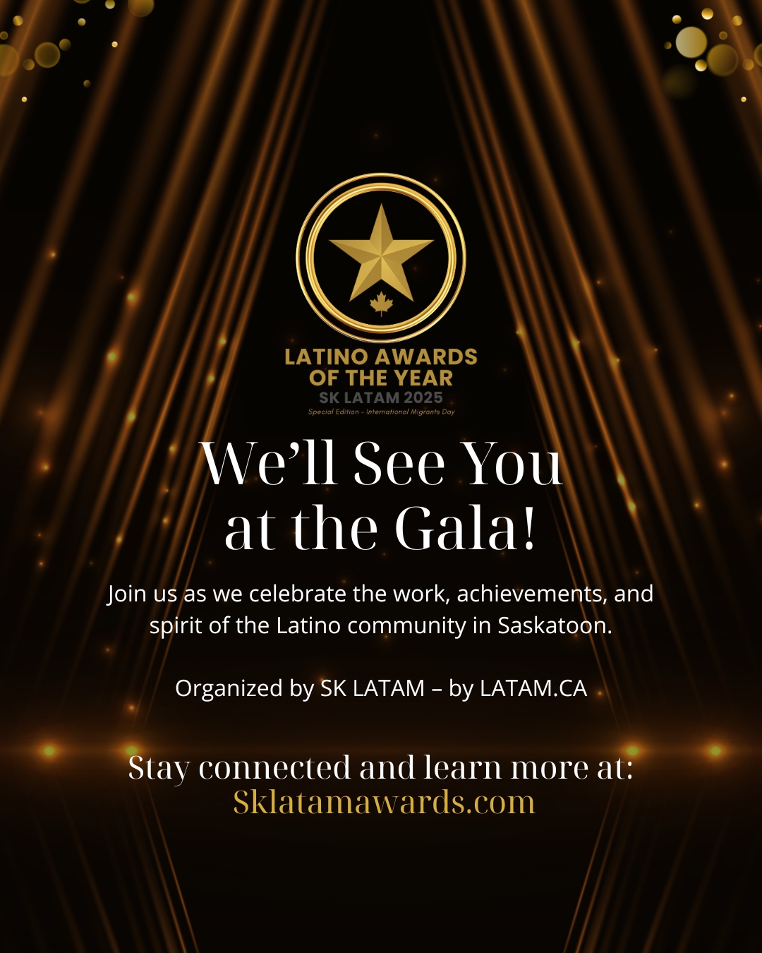 Los Premios Latinos del Año SK Latam 2025 son una iniciativa creada para reconocer, visibilizar y celebrar el talento, el trabajo y el impacto de la comunidad latina en Saskatoon. Nacen del deseo de honrar a quienes, con esfuerzo y dedicación, han logrado abrirse camino lejos de su país, aportando a la economía local, enriqueciendo la vida cultural de la ciudad y fortaleciendo los lazos de la comunidad migrante.