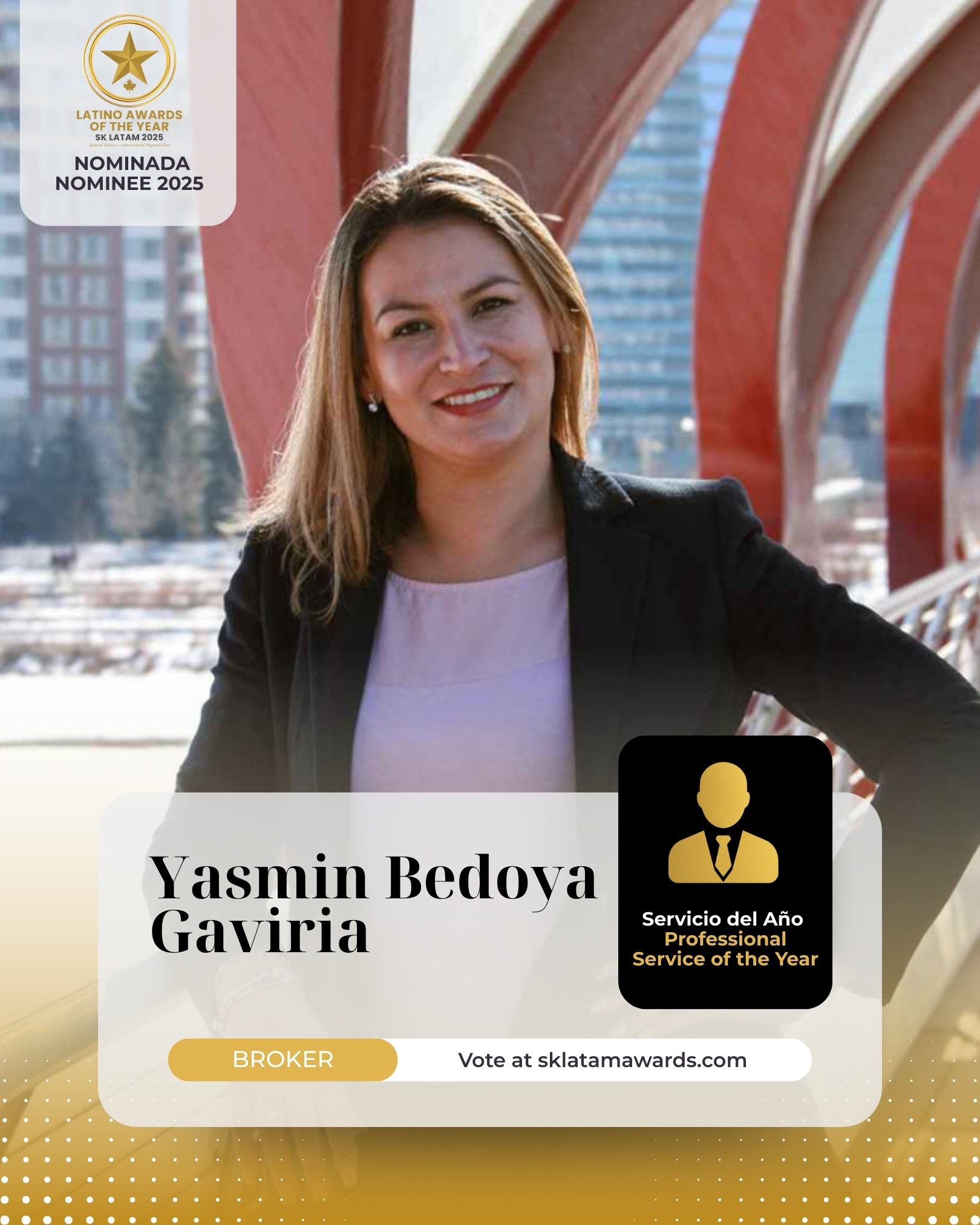Esta categoría reconoce a los profesionales y emprendedores que ponen su experiencia al servicio de la comunidad, ofreciendo apoyo especializado que mejora la vida de las personas día a día. Aquí entran contadores, agentes inmobiliarios, brokers, consultores migratorios, aseguradores, traductores, coaches, proveedores de trámites, asesores financieros y todo aquel que, con ética y compromiso, acompaña a otros en procesos personales, legales, laborales o económicos. Celebramos a quienes trabajan desde la confianza, la responsabilidad y el servicio humano, convirtiéndose en un apoyo fundamental para cientos de familias en Saskatoon.