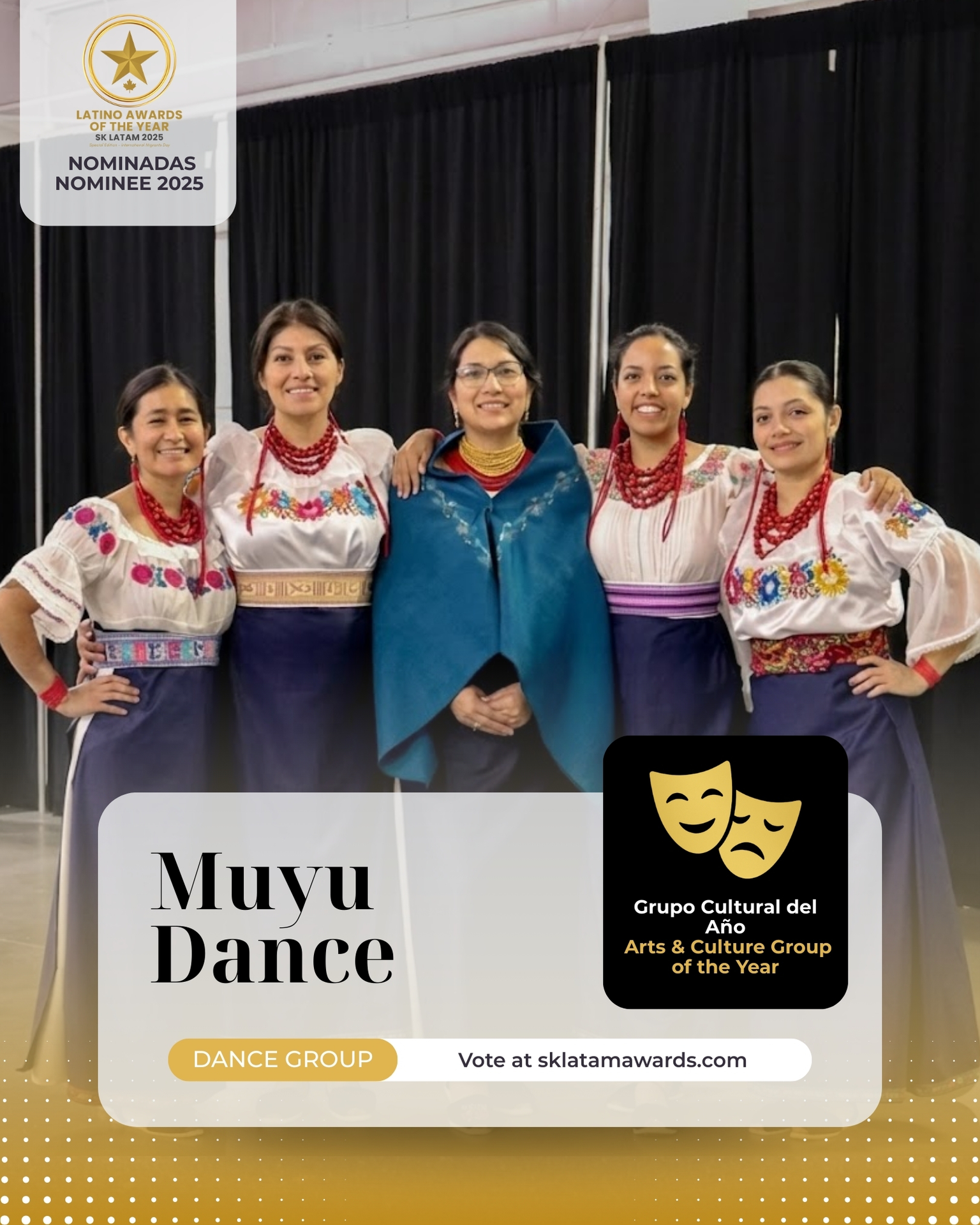 Esta categoría honra a los grupos, academias, colectivos y asociaciones que impulsan la identidad latina a través del arte, la cultura y el deporte. Aquí reconocemos a agrupaciones de danza, teatro, música, performance, talentos locales, academias de fútbol, proyectos comunitarios y cualquier iniciativa que fortalezca el sentido de pertenencia y la integración cultural en Saskatchewan. Su trabajo mantiene vivas nuestras tradiciones, promueve el intercambio entre culturas y crea espacios de encuentro que unen a generaciones enteras. Este reconocimiento celebra el esfuerzo colectivo de quienes construyen comunidad a través del arte y defienden nuestras raíces con orgullo.